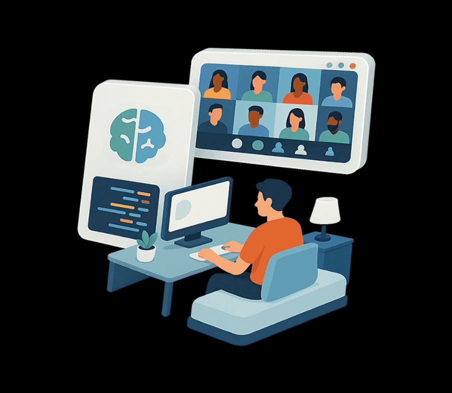 Complete AI transformation pathways for organizations. We take your team from first exposure to applied innovation—with hands-on workshops, an energizing Vibeathon, and flexible development pathways that turn interest into capability.